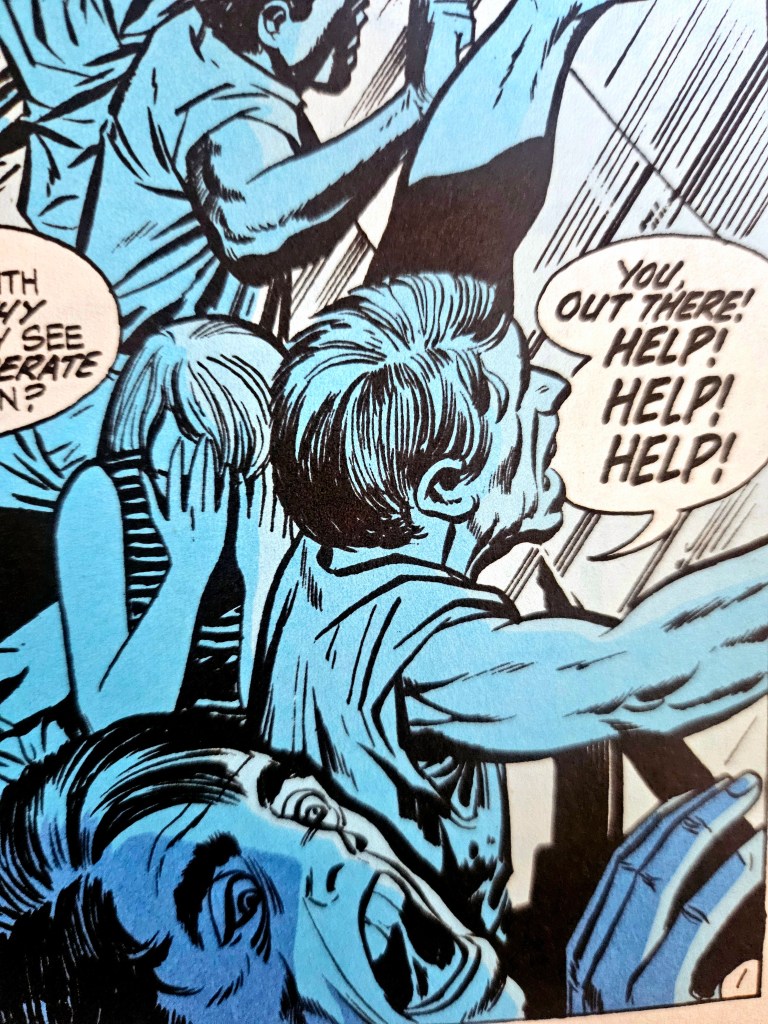 He was pretty fucking good, Jack Kirby. It’s easy to forget the actual work when you’re paying tribute to the reputation, but Forever People #4 is an unusually potent entertainment. That scene where you’ve got to keep pushing a button to stop someone being decapitated by a roller coaster – it’s a great, goofy comic book idea but I think of it every time I do activism by post. I spend a similar amount of time trying not to think about the way Kirby drew these frantic faces.
